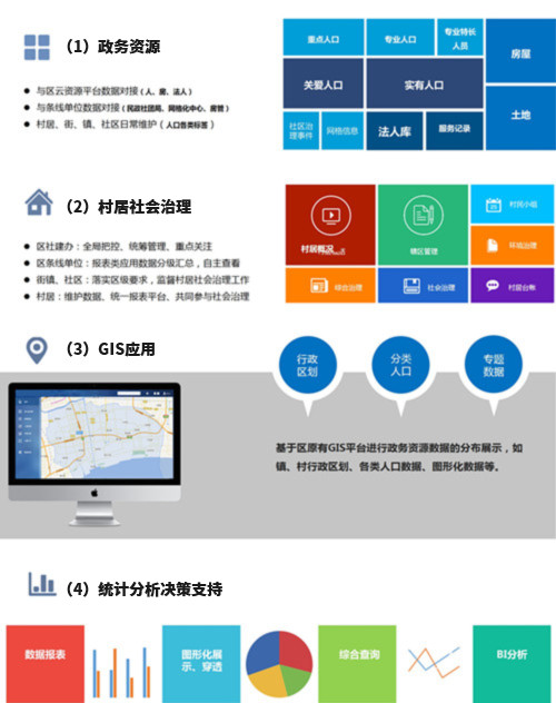 该信息系统旨在建立覆盖全区的信息资源目录体系,通过信息资源交换平台,实现信息资源的跨部门共享,本期以南桥镇、奉城镇为试点,主要围绕村居社区管理基础数据而开展的数据采集、数据存取、基础架构、数据处理、统计分析、数据挖掘、模型预测和结果的GIS呈现。