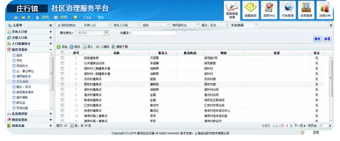 我司为奉贤区庄行镇开发的社区治理服务平台现已正式运行。运行以来,庄行镇的创新“网格化+信息化”服务管理模式,通过社区治理服务平台、设置镇级热线、实施电子走访、建立应急管理系统等举措,实现社会管理由粗放向精细、静态到动态、被动到主动、分散到集中、局部到全面的转变,全面提升庄行镇综合管理效能。