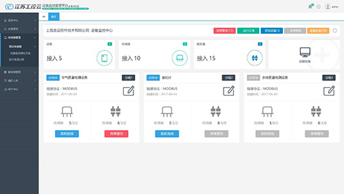 (3)宜兴环保物联开放平台网站优化及功能升级:优化原有网站页面及栏目设计,对原监控中心和设备管理页面进行优化设计、增加告警功能、合理规划数据结构。