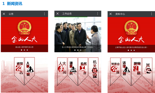 (1)微信公众号:新闻资讯、代表专区、意见反馈